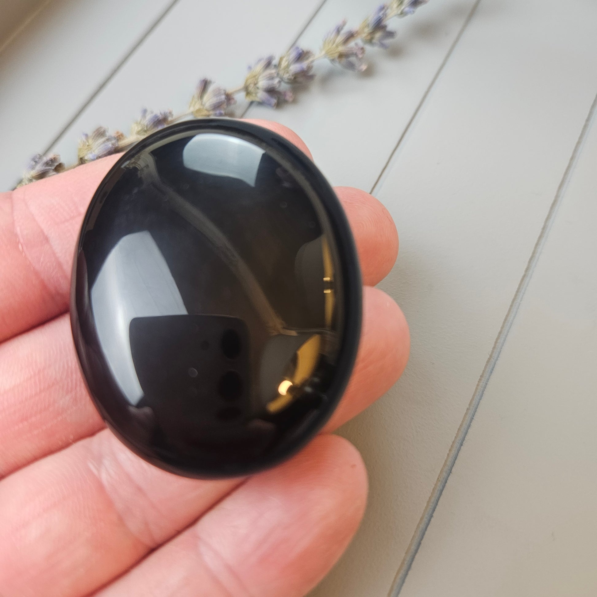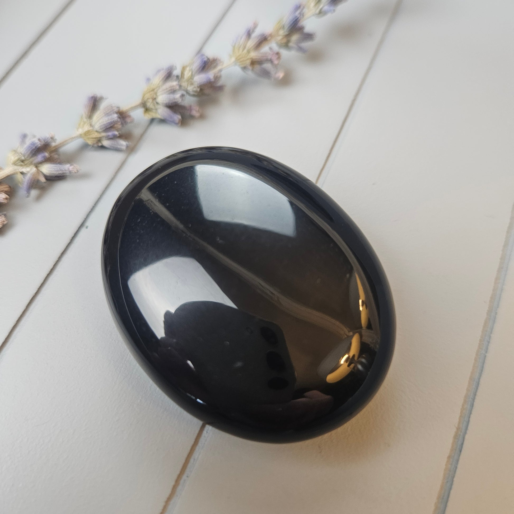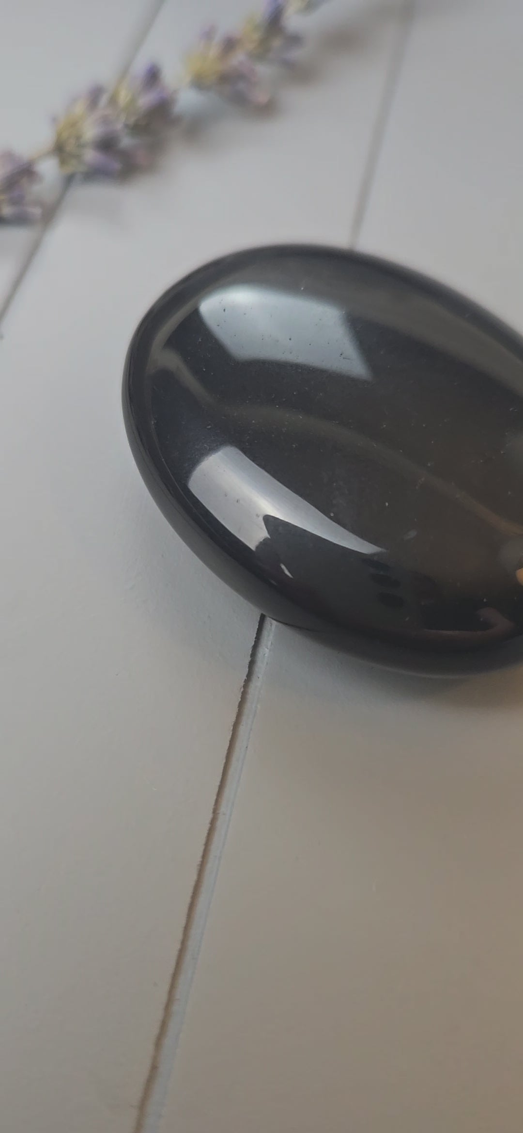 This palm stone is smooth and weighty, offering a deeply grounding tactile experience. Whether you're meditating, doing emotional work, or simply holding it during the day, Obsidian absorbs what no longer serves you—quietly, powerfully.